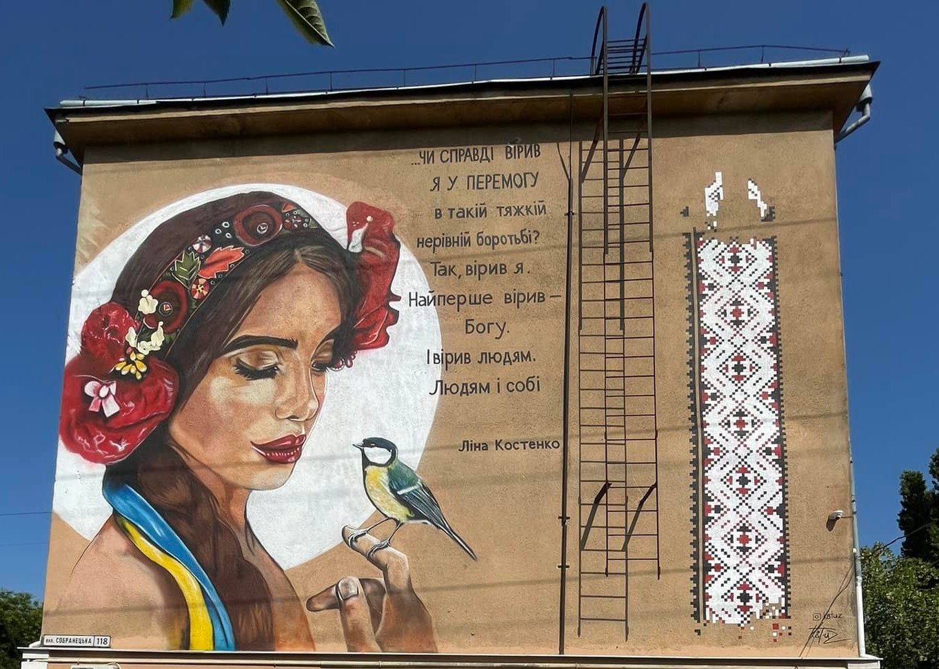 «Це був подарунок для міста, де я зараз мешкаю. Мені дуже хотілось віддячити місцевій громаді за гостинність і допомогу. Тим паче, до цього у місті не було муралів, і це щось нове. Зараз важкі часи для України, всі допомагають одним одному.. хто чим може. Я вмію малювати.. і мені дуже хотілось бути корисною своїй Батьківщині. Зараз у кожного свій фронт.. у мене –  «художній». Хочеться підіймати патріотичний дух людей. Вшановувати пам’ять наших героїв. Я роблю це таким… трохи не звичним, але дієвим способом».