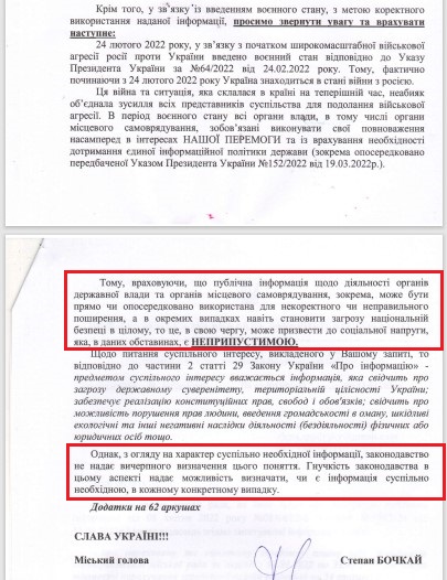 У якій ще інформації відмовила міська рада?